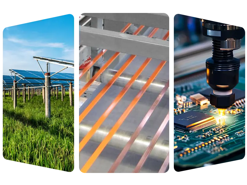 • ફોટોવોલ્ટેઈક ક્ષેત્ર: ઘટકોને કાર્યક્ષમ રીતે વીજળી ચલાવવામાં મદદ કરવા માટે ફોટોવોલ્ટેઈક વેલ્ડીંગ રિબન અને બસબાર્સનું મોટા પાયે ઉત્પાદન.